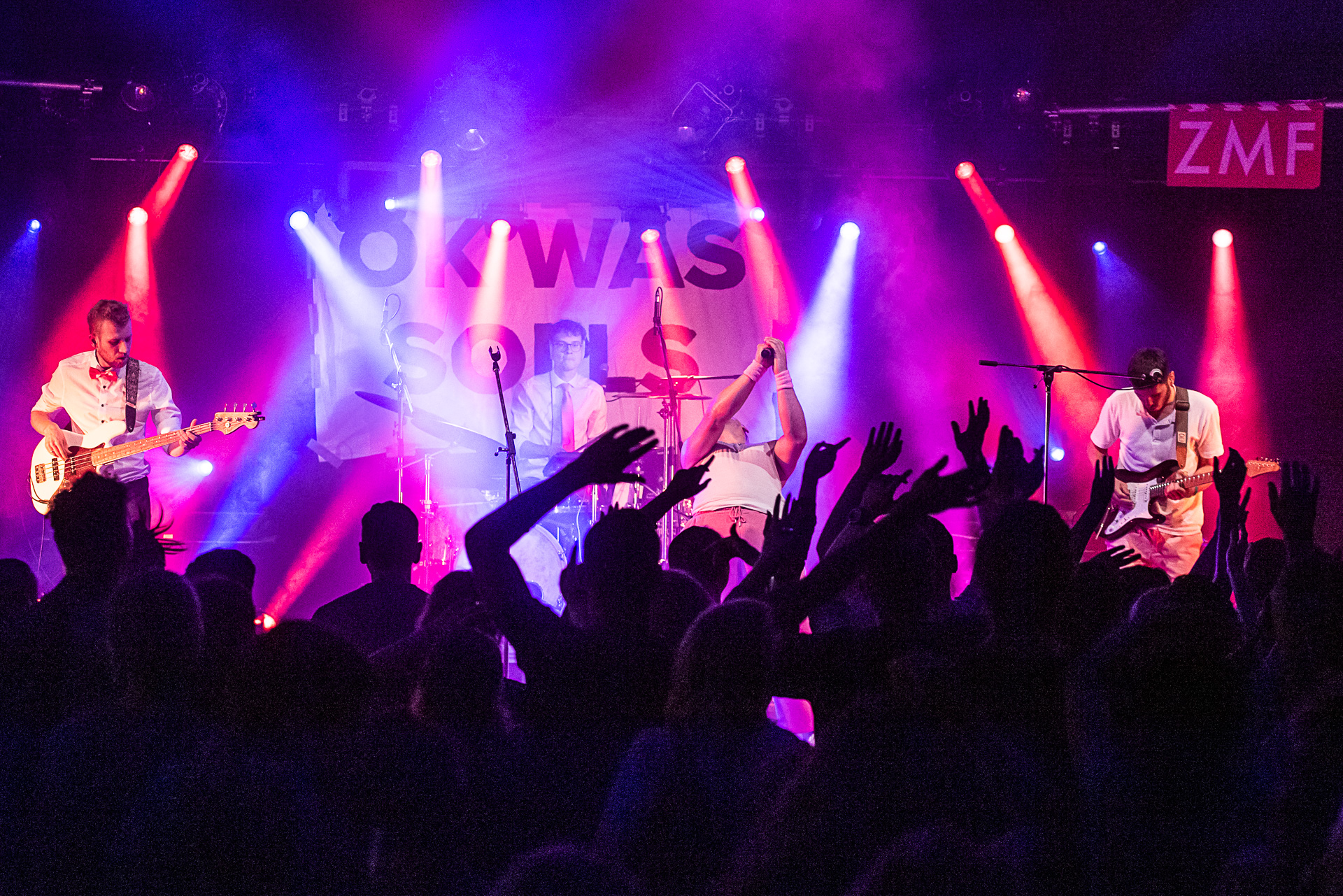 OK WAS SOLLS rufen mit ihrer bald erscheinenden „EP1“ auf die Dancefloors. „EP2“ ist ebenfalls fast im Kasten und zementiert, wohin die Reise geht: Tiefsinnige Texte werden in tanzbaren Abgehsongs verpackt. Das Ergebnis „… ist im weitesten Sinne Pop“, sagt Simon (Gitarrist und Sänger). „Aber in geil“ beeilt sich Lukas (Rapper) zu ergänzen.